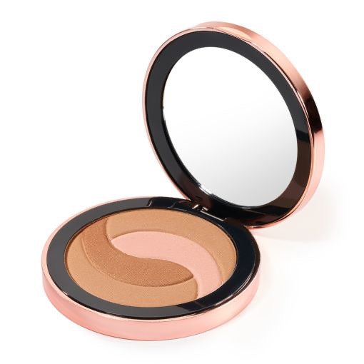 Kolme täydellistä pronssin sävyä ja kokonaisuutta täydentävä vaaleanpunainen poskipuna saa kasvoillesi sekä luonnollisen, heleän hehkun että upean auringon päivettämän lopputuloksen.
